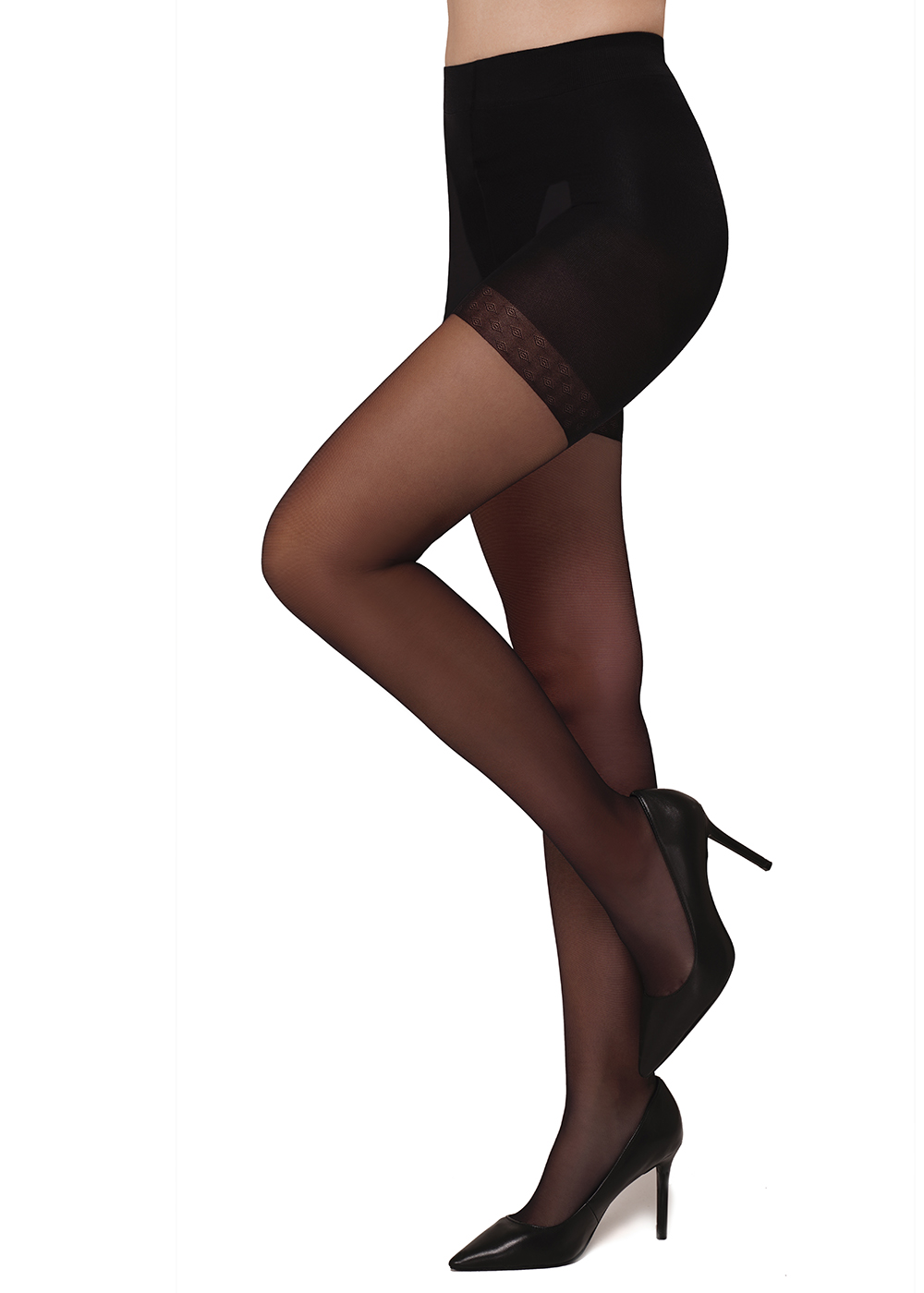 Figurformende Feinstrumpfhose mit Push-Up-Effekt - formt die Hüfte, hebt den Po und sorgt für eine schlanker wirkende Taille! Beinlänge 20 denier/Höschenteil 140 denier
