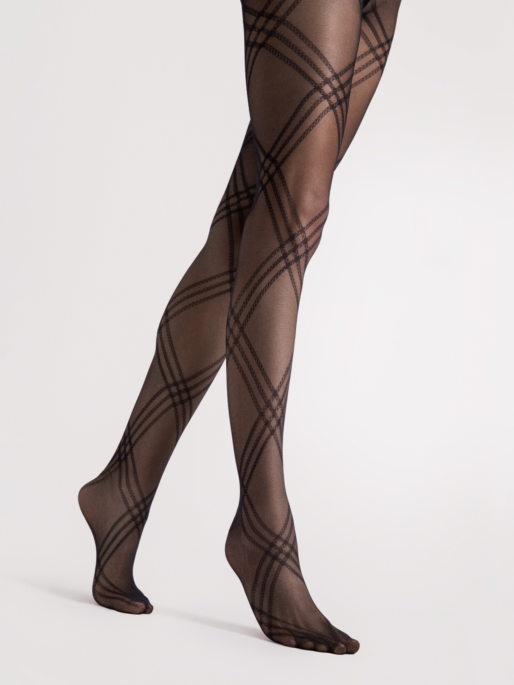 Produktinformationen "Fiore - Feinstrumpfhose mit elegantem Karomuster in minimalistischer Schwarz-in-Schwarz-Ausführung"