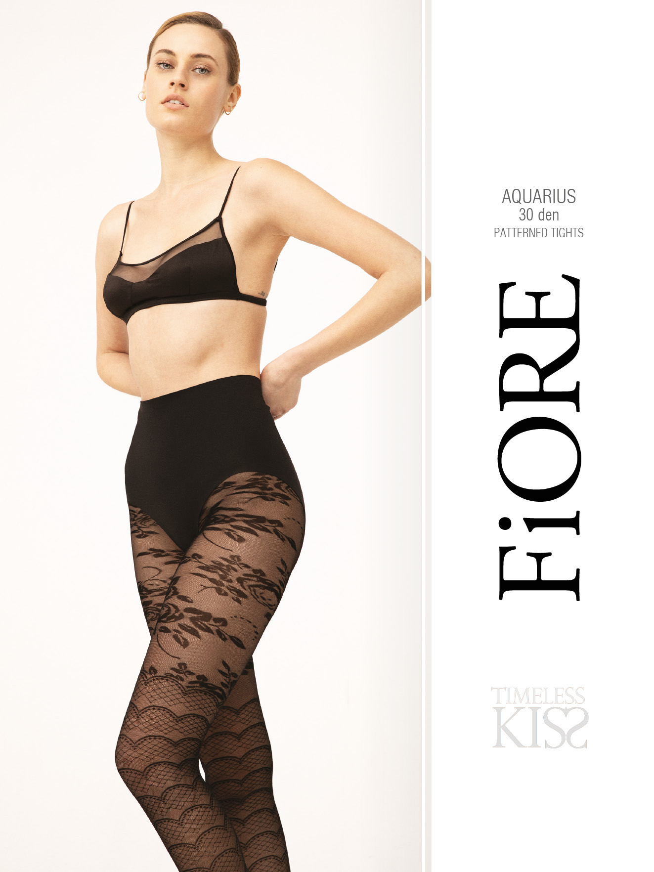 Feinstrumpfhose mit Overknee-Optik, die das geometrische Spitzenmuster mit romantischem Blumenmotiv verbindet, 30 DEN.