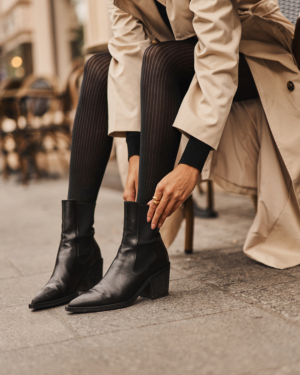 Blickdichte Strumpfhose mit vertikalen Streifen, die Ihre Beine länger und schlanker wirken lassen. Durchgehend unverstärkt. 60 DEN