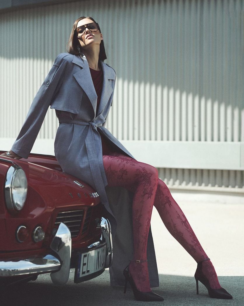 - Feinstrumpfhose mit wunderschönem Blumenmuster in Spitzenoptik