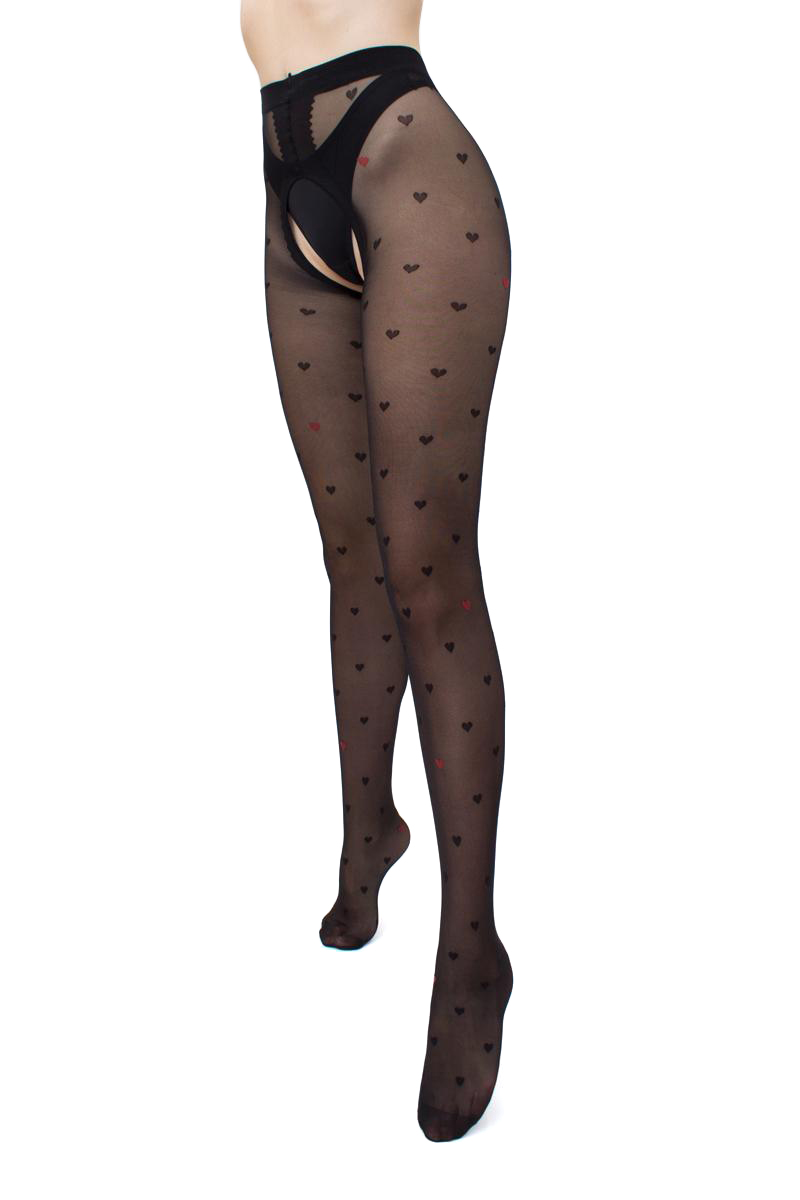 Strumpfhose von Giulia mit offenem Schrittbereich und süßem Herzmuster, 20 den.