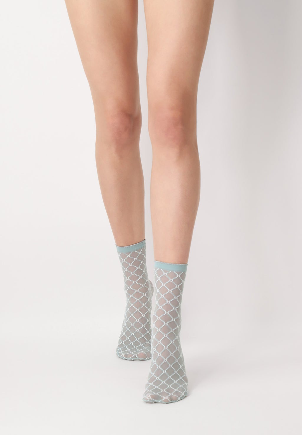 Transparente, zweifarbige Söckchen mit geometrischem Muster in Netzoptik und Tülleffekt, erhältlich in den angesagtesten Farben der Saison. Mit komfortablem, elegantem Bündchen mit Lurex-Effekt und gemusterter Fußspitze für optimalen Tragekomfort. Sehr weich im Griff.