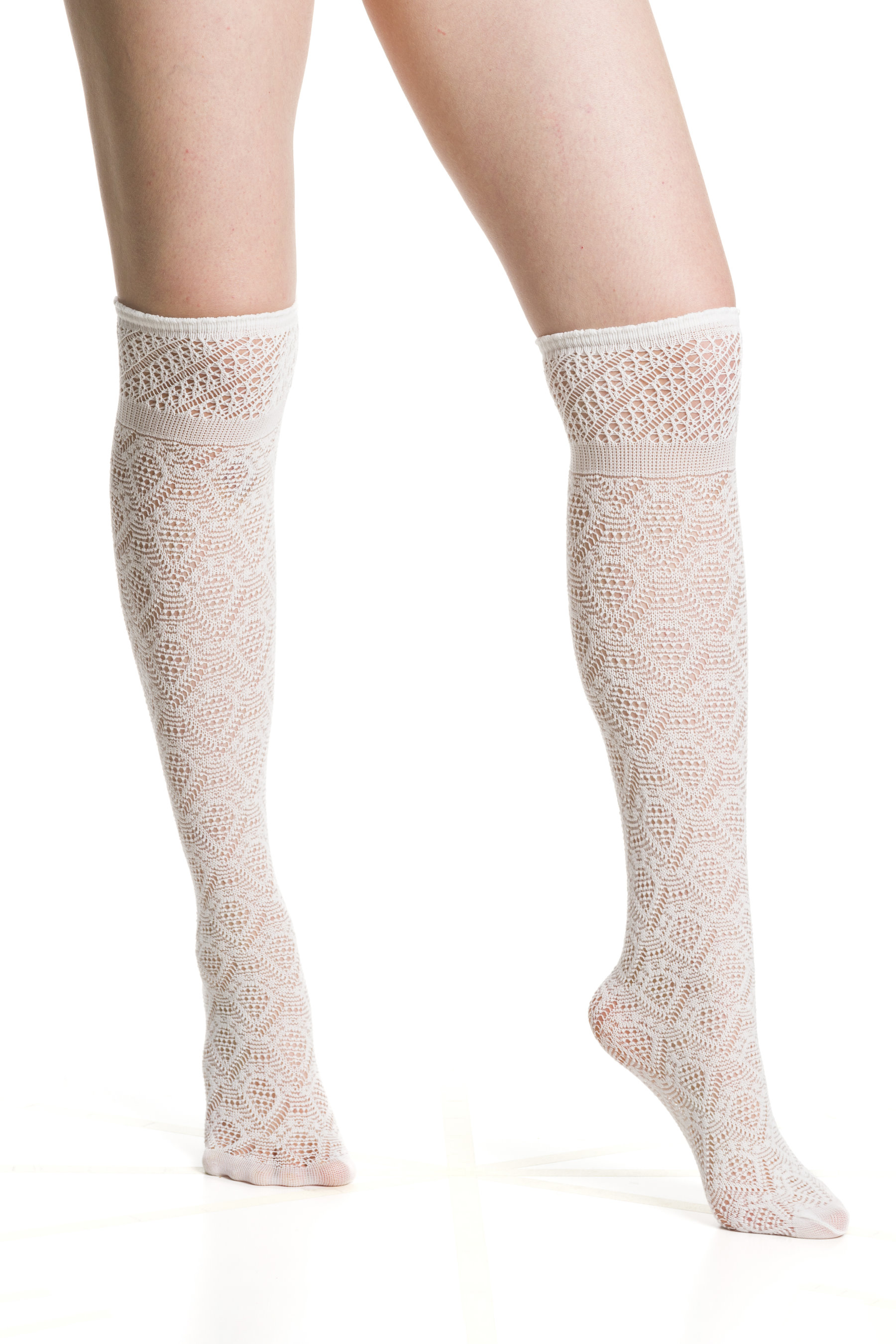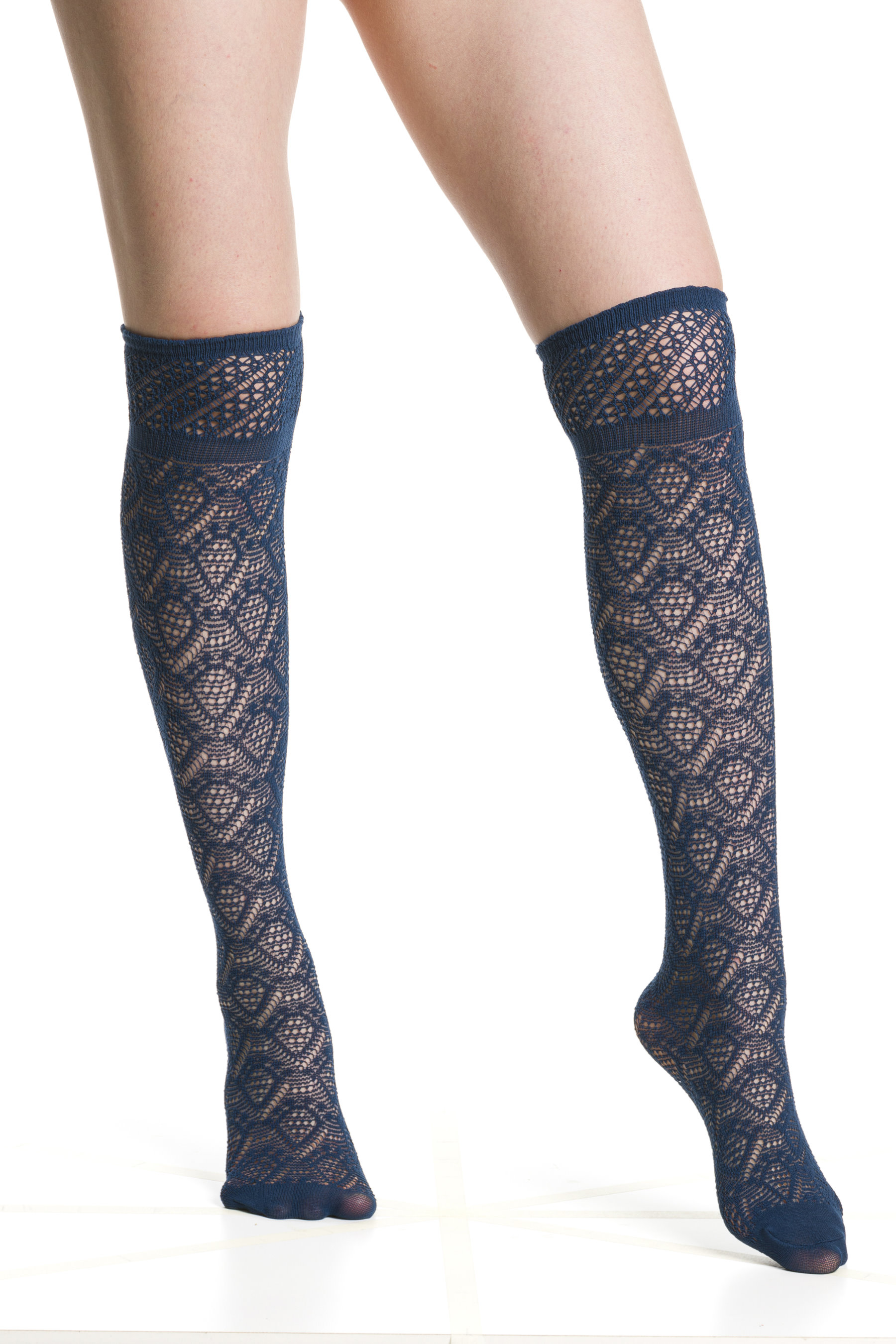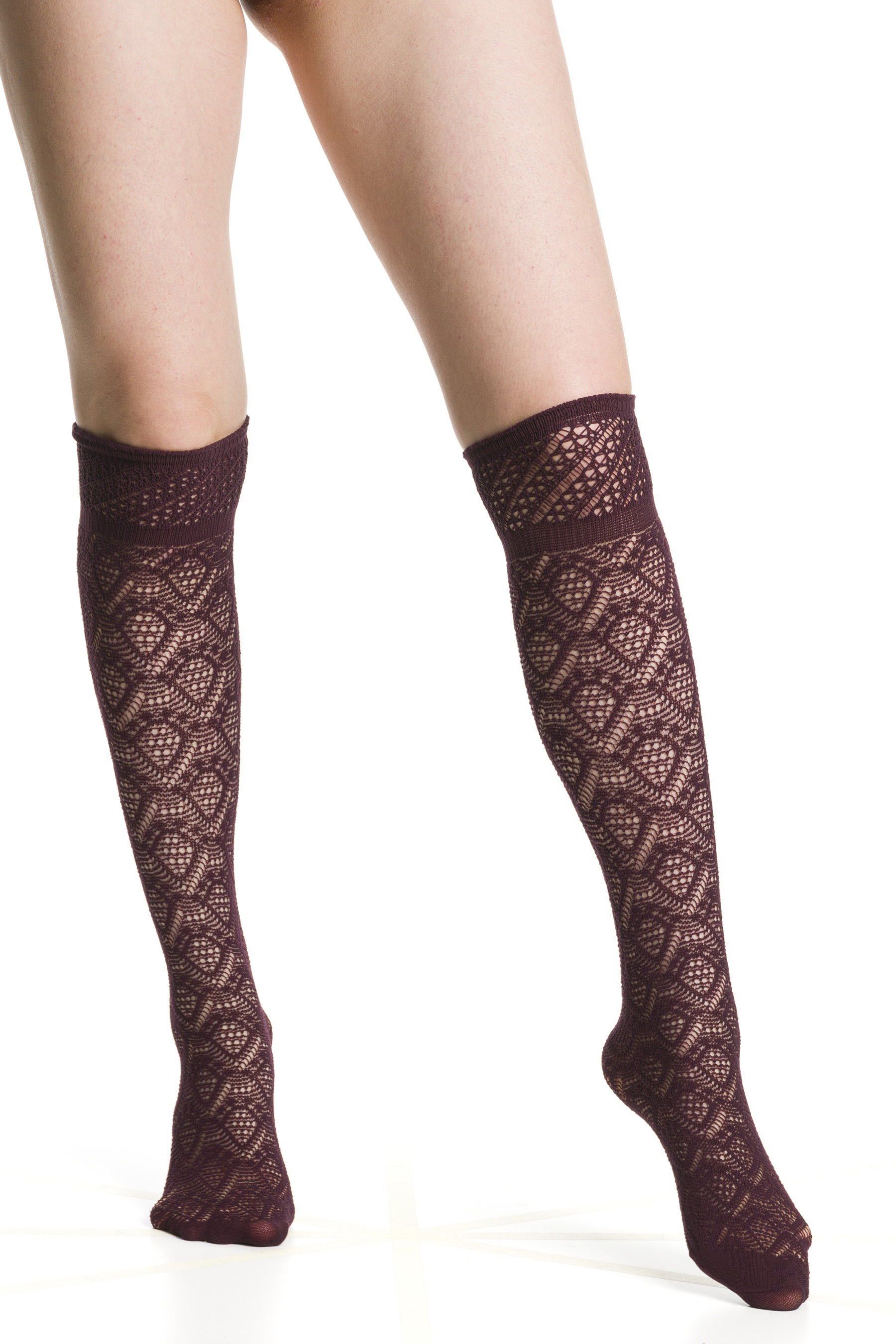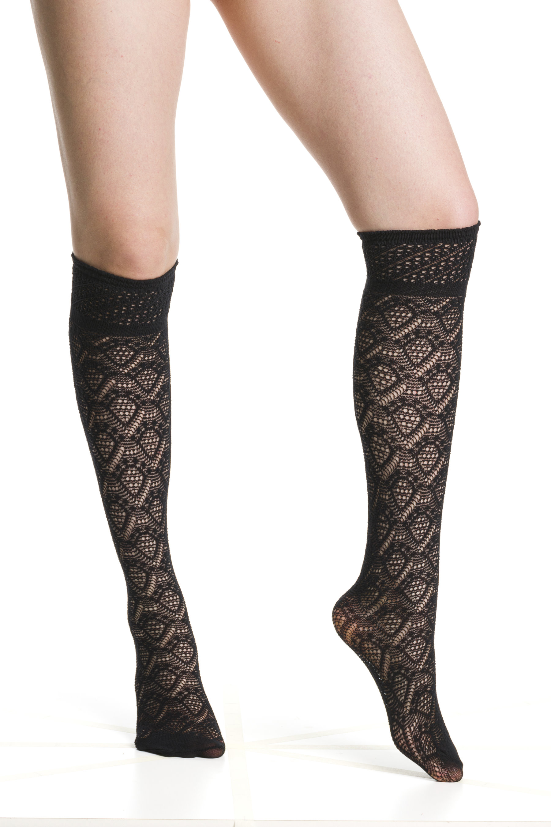 Produktinformationen "Trasparenze - Kniestrümpfe mit geometrischem Ajourmuster in Spitzenoptik"