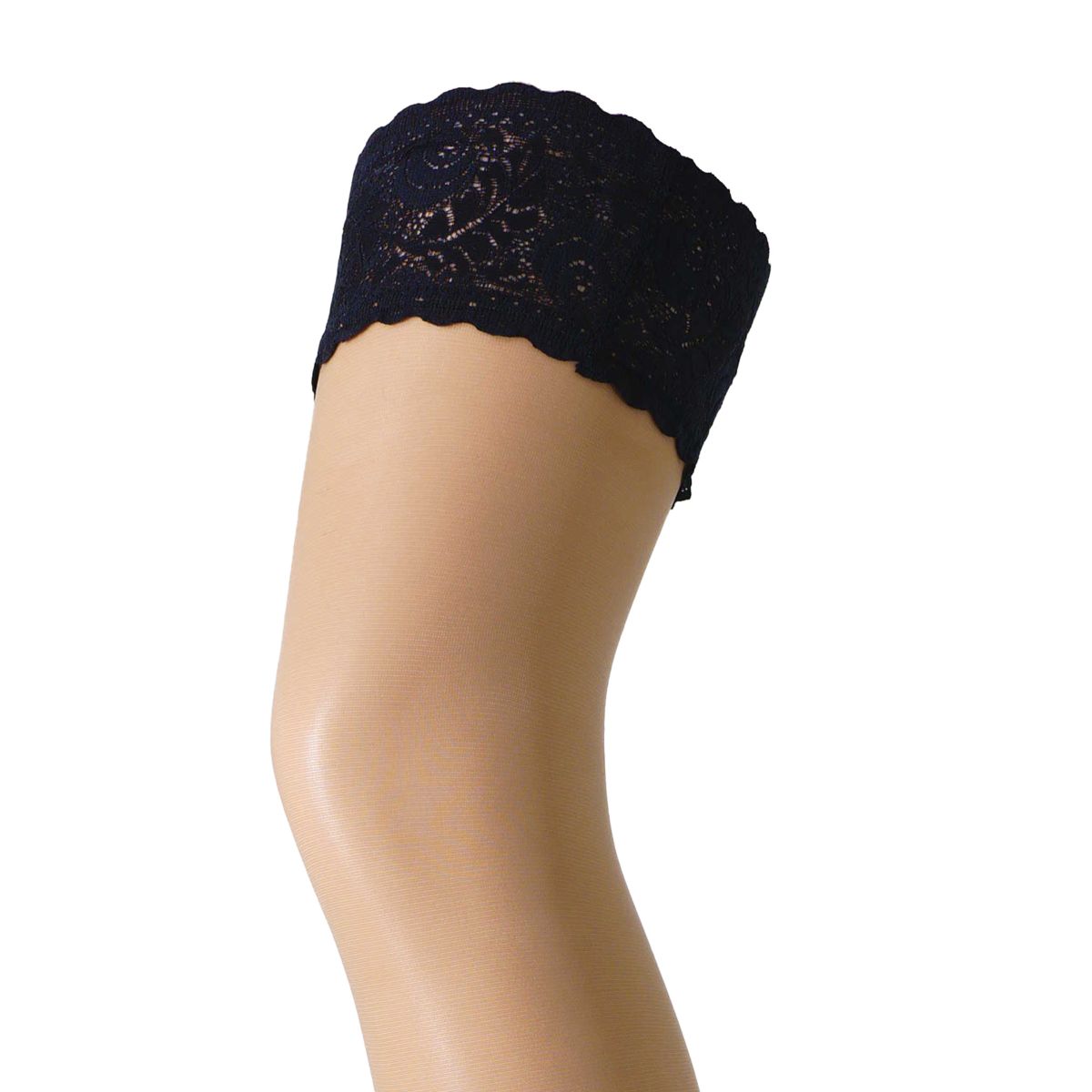 Halterlose Strümpfe mit floral gemustertem, farblich abgesetztem Spitzenabschluss (8 cm breit), mit transparenter Fußspitze, 20 denier. Diese Strümpfe veredeln jedes Outfit!